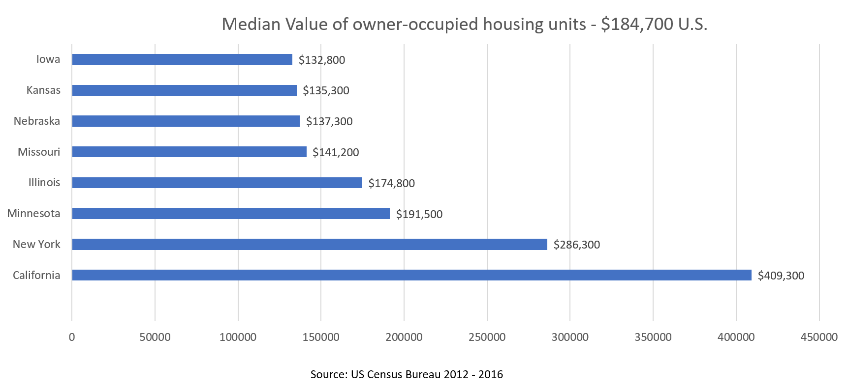 Putting down roots costs less here. You can buy a lot of house for the money in Iowa, especially when compared to either coast and most other metropolitan areas. Housing prices in Iowa average 23 percent below the Midwest median and 36 percent less than the national median. Iowa also has the second-lowest auto insurance premiums in the nation. And costs for medical care and services are among the nation's lowest.