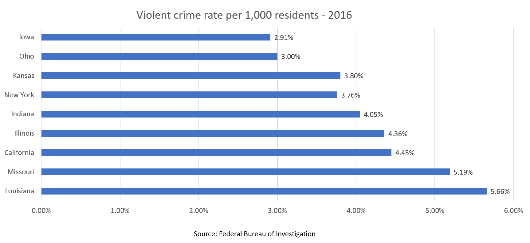 Iowa's violent crime rate is nearly half the national average. Iowans can enjoy an evening stroll through tree-shaded neighborhoods and parks with a feeling of safety and security. Our clean, uncontested cities and towns have less traffic, less noise, and neighbors who are ... well, neighborly. Easy commuting opens up a wide range of work opportunities. Drive time for most Iowans averages a mile a minute!