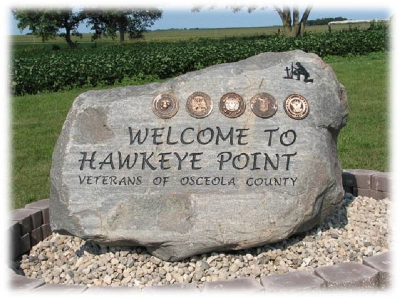 Hawkeye Point is Iowa's highest elevation at 1,670 feet. Read more about the park and campground here. Reservations for camping at the Hawkeye Point Campground can be made by calling the Osceola County Conservation Board at 712-758-3709.